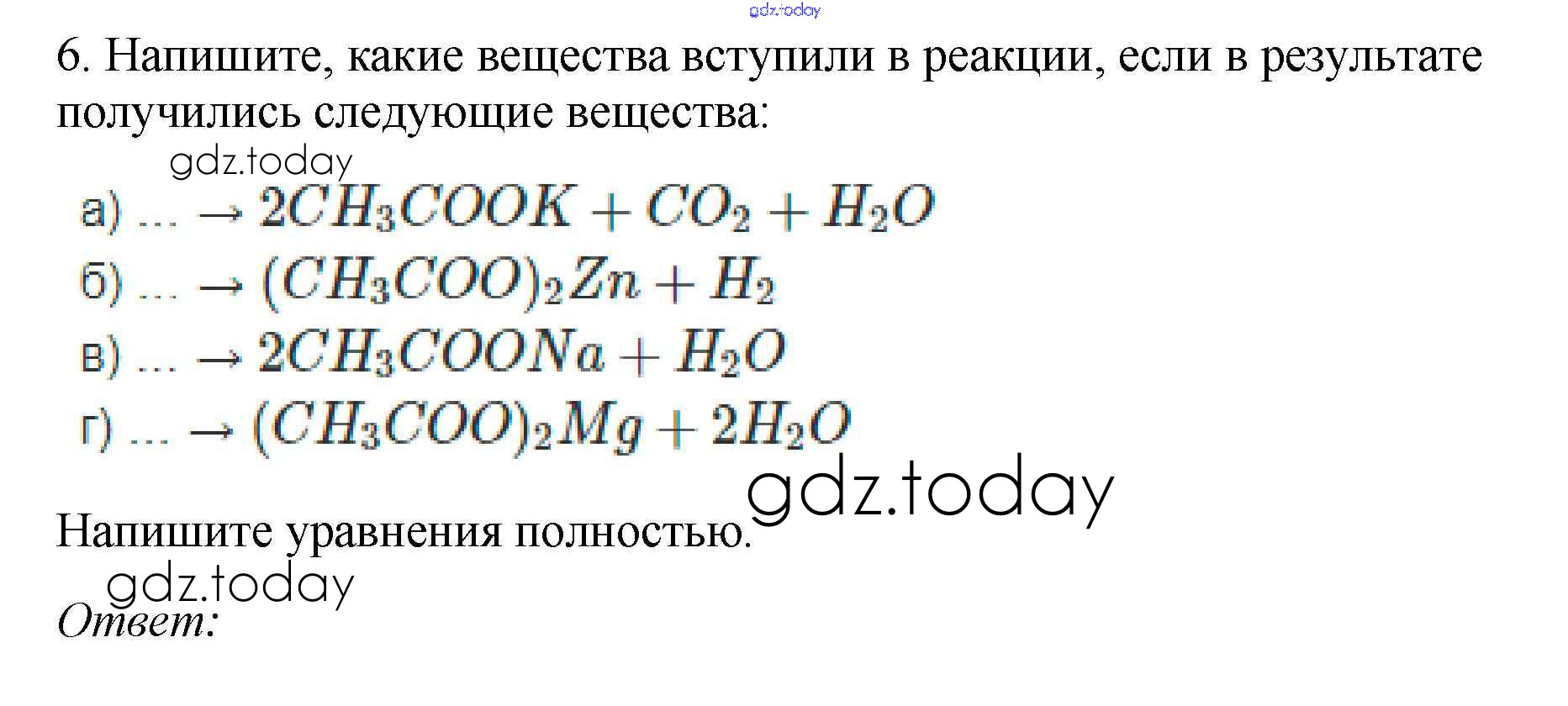 На страницах сайта gdz.today вы найдете учебный и вспомогательный материал, направленный на улучшения знаний школьной программы. ГДЗ - онлайн мир знаний Решение к §23 6 Учебнику по Химии для 9 класса Габриелян, Остроумов Просвещение 2021