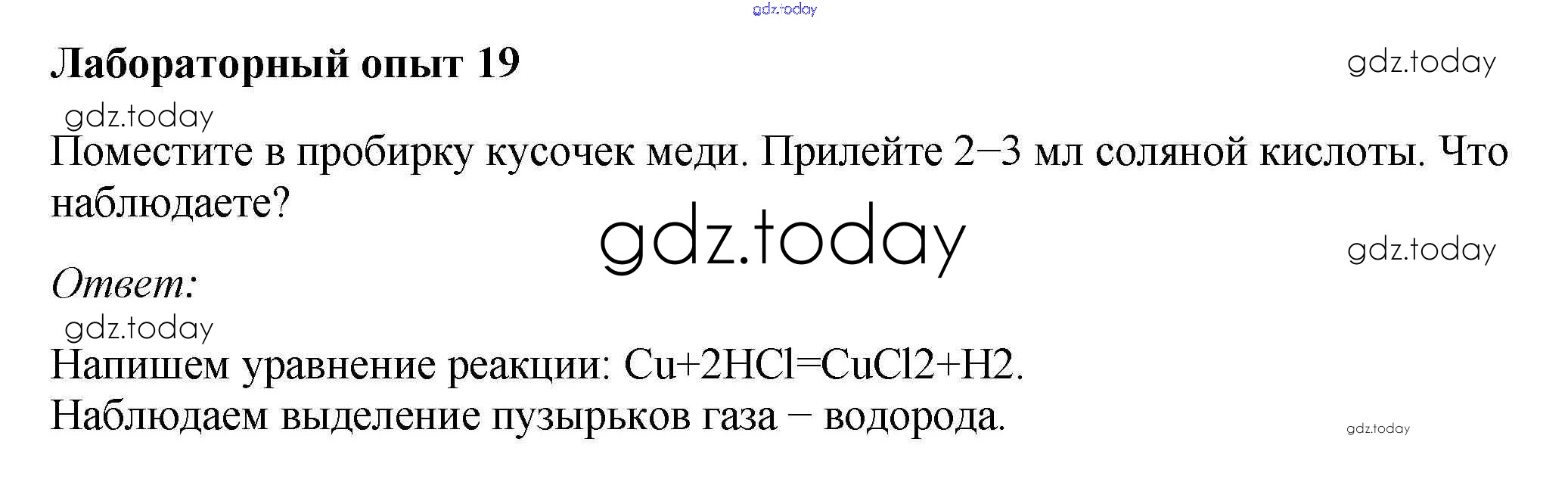 На страницах сайта gdz.today вы найдете учебный и вспомогательный материал, направленный на улучшения знаний школьной программы. ГДЗ - онлайн мир знаний Решение к лабораторным опытам 19 Учебнику по Химии для 9 класса Габриелян, Остроумов Просвещение 2021