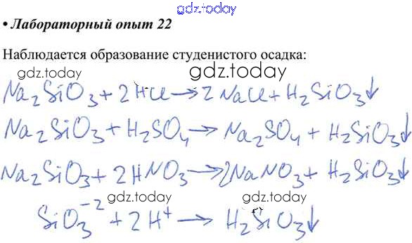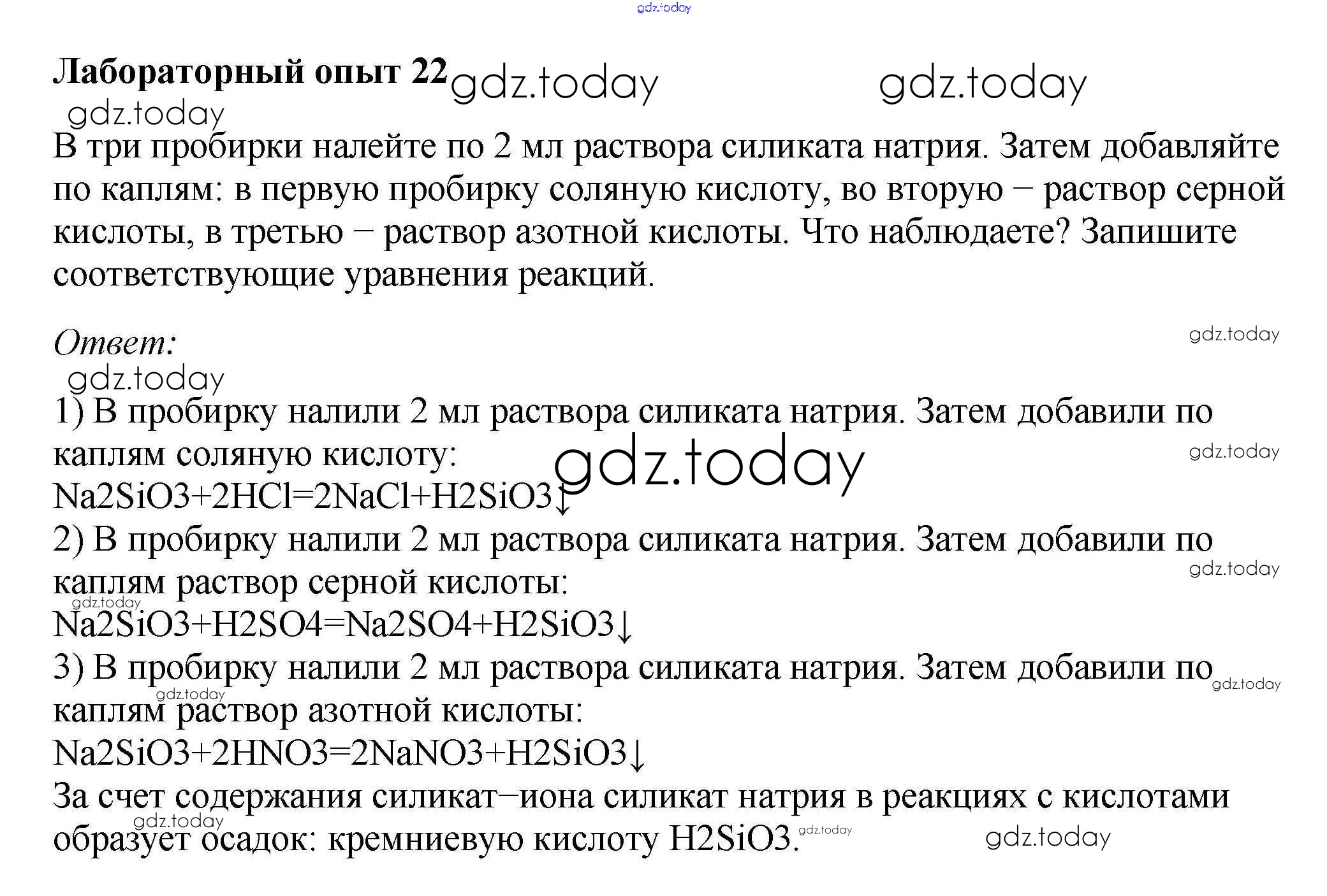 На страницах сайта gdz.today вы найдете учебный и вспомогательный материал, направленный на улучшения знаний школьной программы. ГДЗ - онлайн мир знаний Решение к лабораторным опытам 22 Учебнику по Химии для 9 класса Габриелян, Остроумов Просвещение 2021