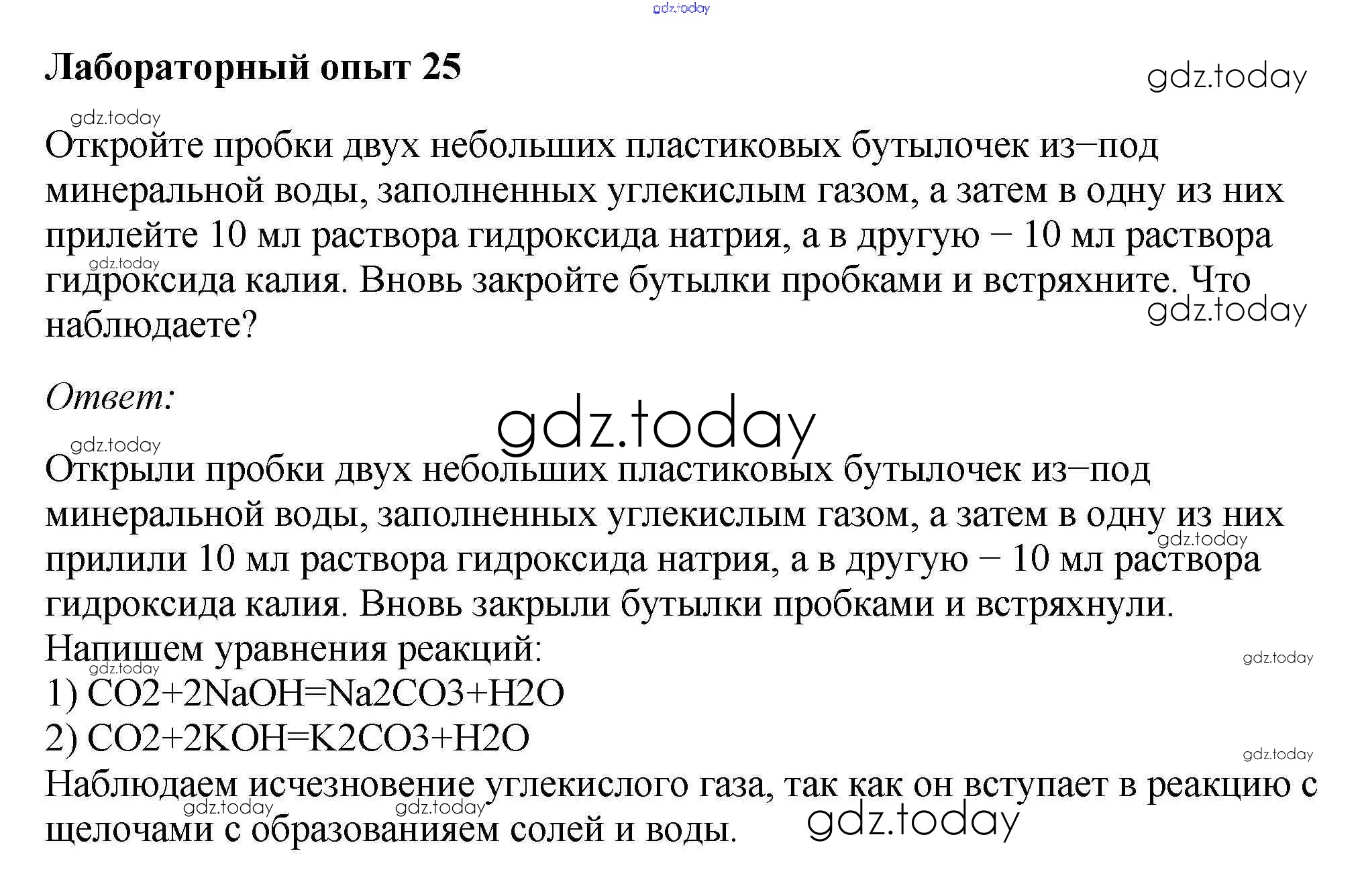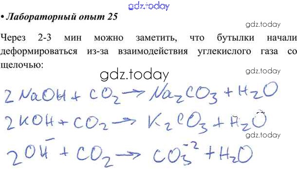 На страницах сайта gdz.today вы найдете учебный и вспомогательный материал, направленный на улучшения знаний школьной программы. ГДЗ - онлайн мир знаний Решение к лабораторным опытам 25 Учебнику по Химии для 9 класса Габриелян, Остроумов Просвещение 2021