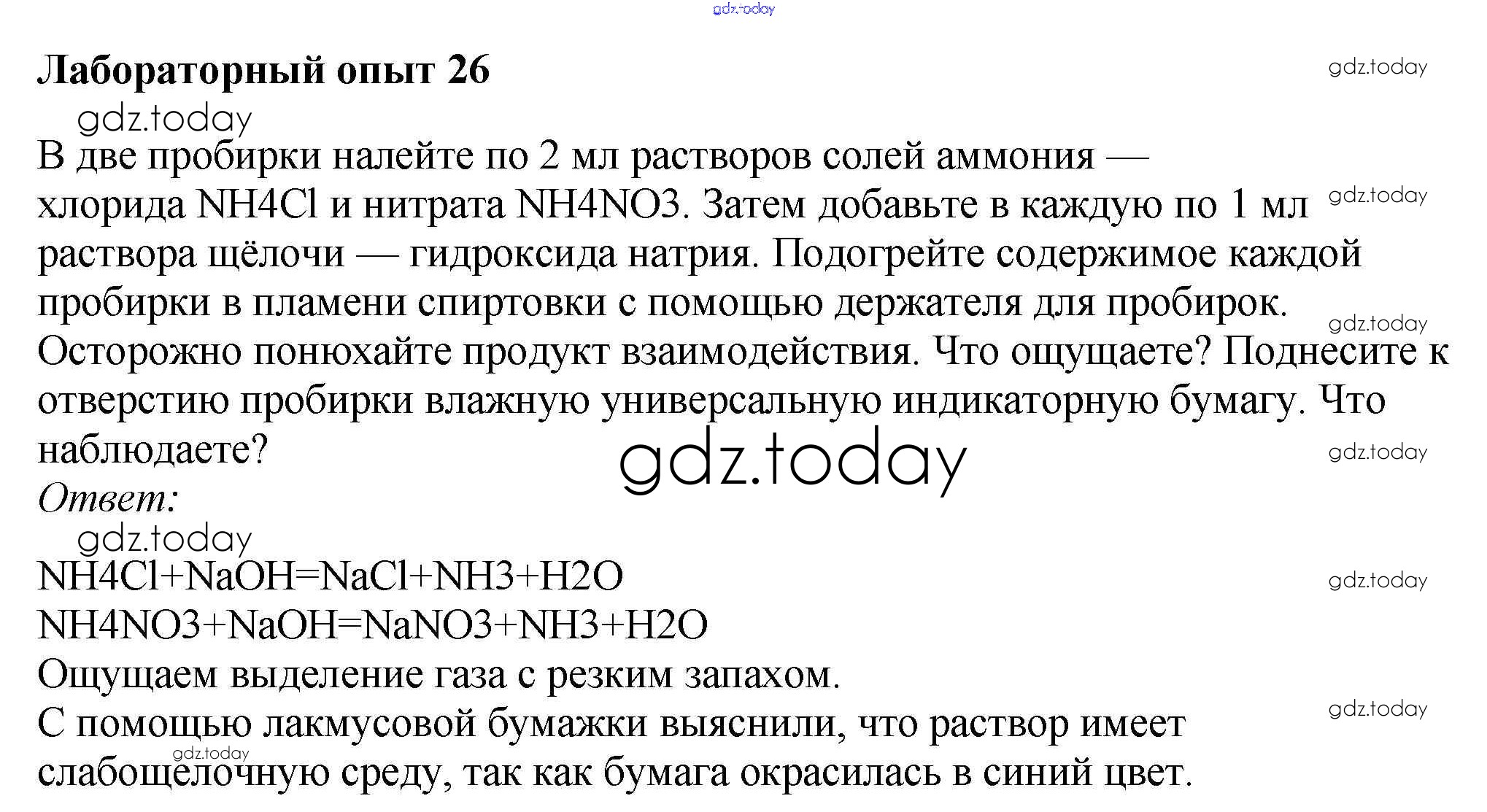 На страницах сайта gdz.today вы найдете учебный и вспомогательный материал, направленный на улучшения знаний школьной программы. ГДЗ - онлайн мир знаний Решение к лабораторным опытам 26 Учебнику по Химии для 9 класса Габриелян, Остроумов Просвещение 2021