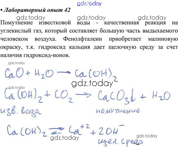 На страницах сайта gdz.today вы найдете учебный и вспомогательный материал, направленный на улучшения знаний школьной программы. ГДЗ - онлайн мир знаний Решение к лабораторным опытам 42 Учебнику по Химии для 9 класса Габриелян, Остроумов Просвещение 2021
