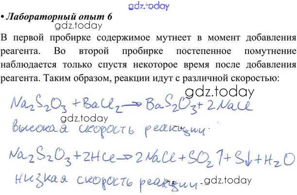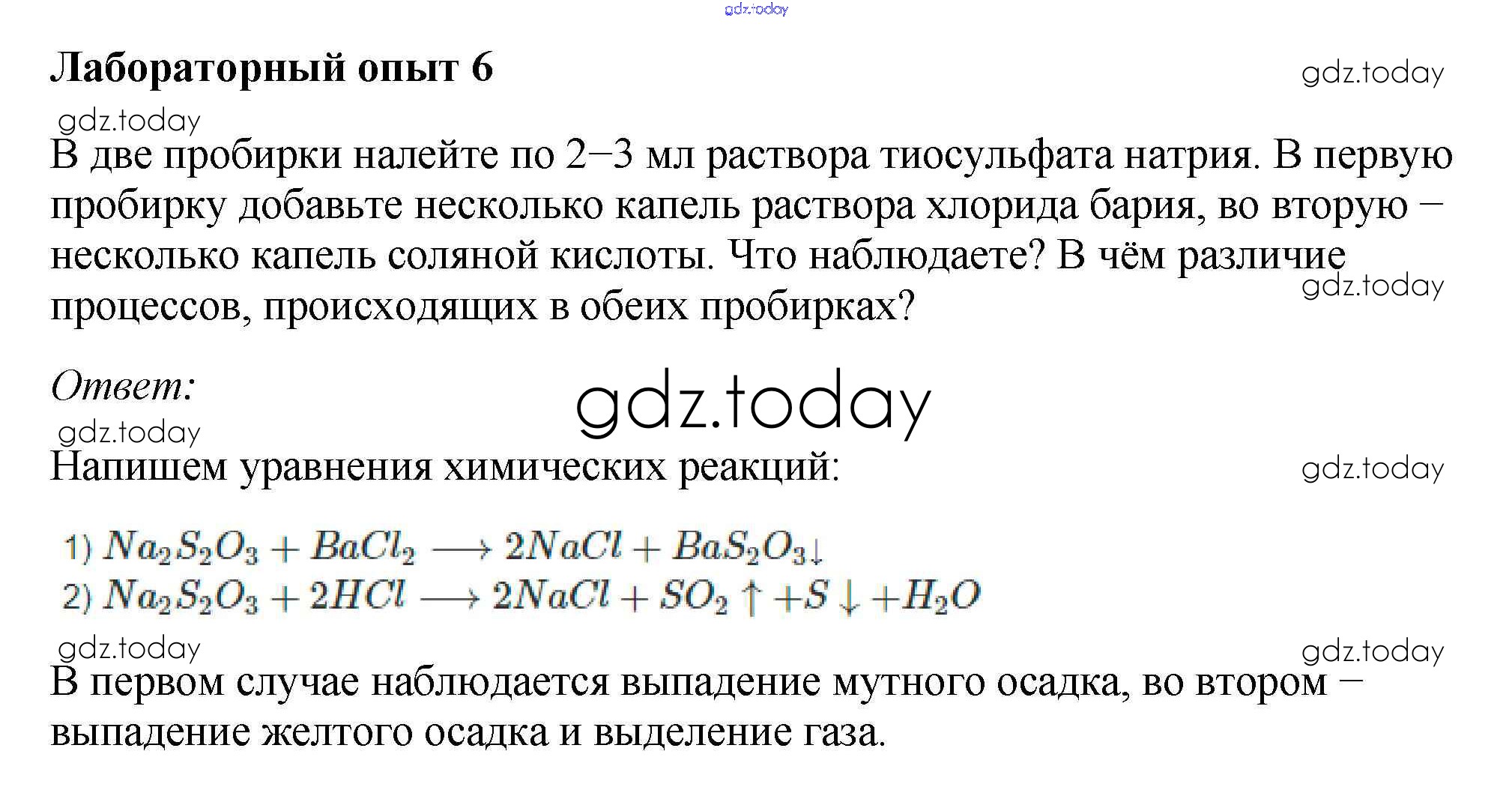 На страницах сайта gdz.today вы найдете учебный и вспомогательный материал, направленный на улучшения знаний школьной программы. ГДЗ - онлайн мир знаний Решение к лабораторным опытам 6 Учебнику по Химии для 9 класса Габриелян, Остроумов Просвещение 2021