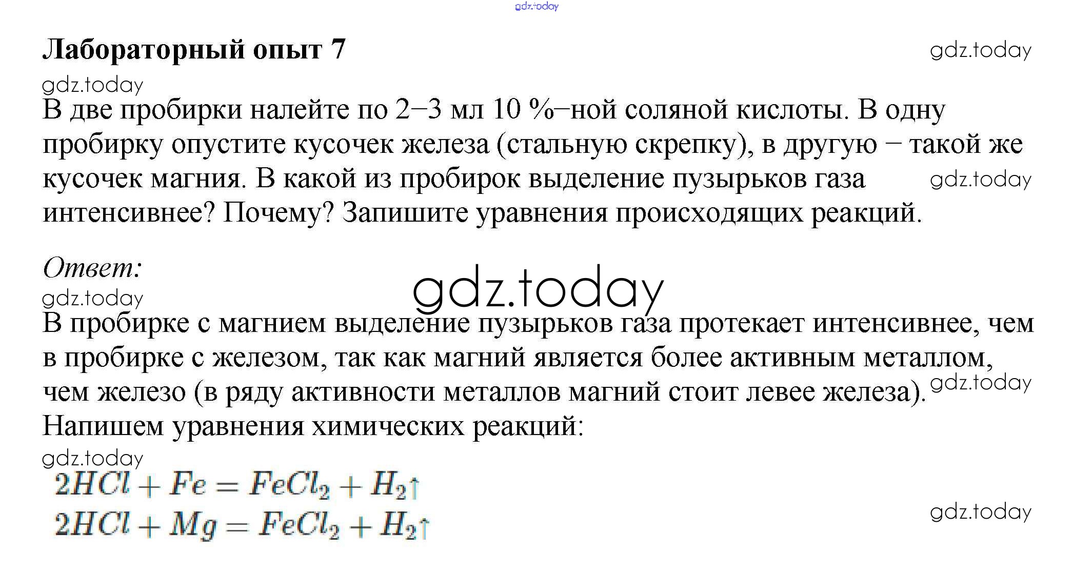 На страницах сайта gdz.today вы найдете учебный и вспомогательный материал, направленный на улучшения знаний школьной программы. ГДЗ - онлайн мир знаний Решение к лабораторным опытам 7 Учебнику по Химии для 9 класса Габриелян, Остроумов Просвещение 2021