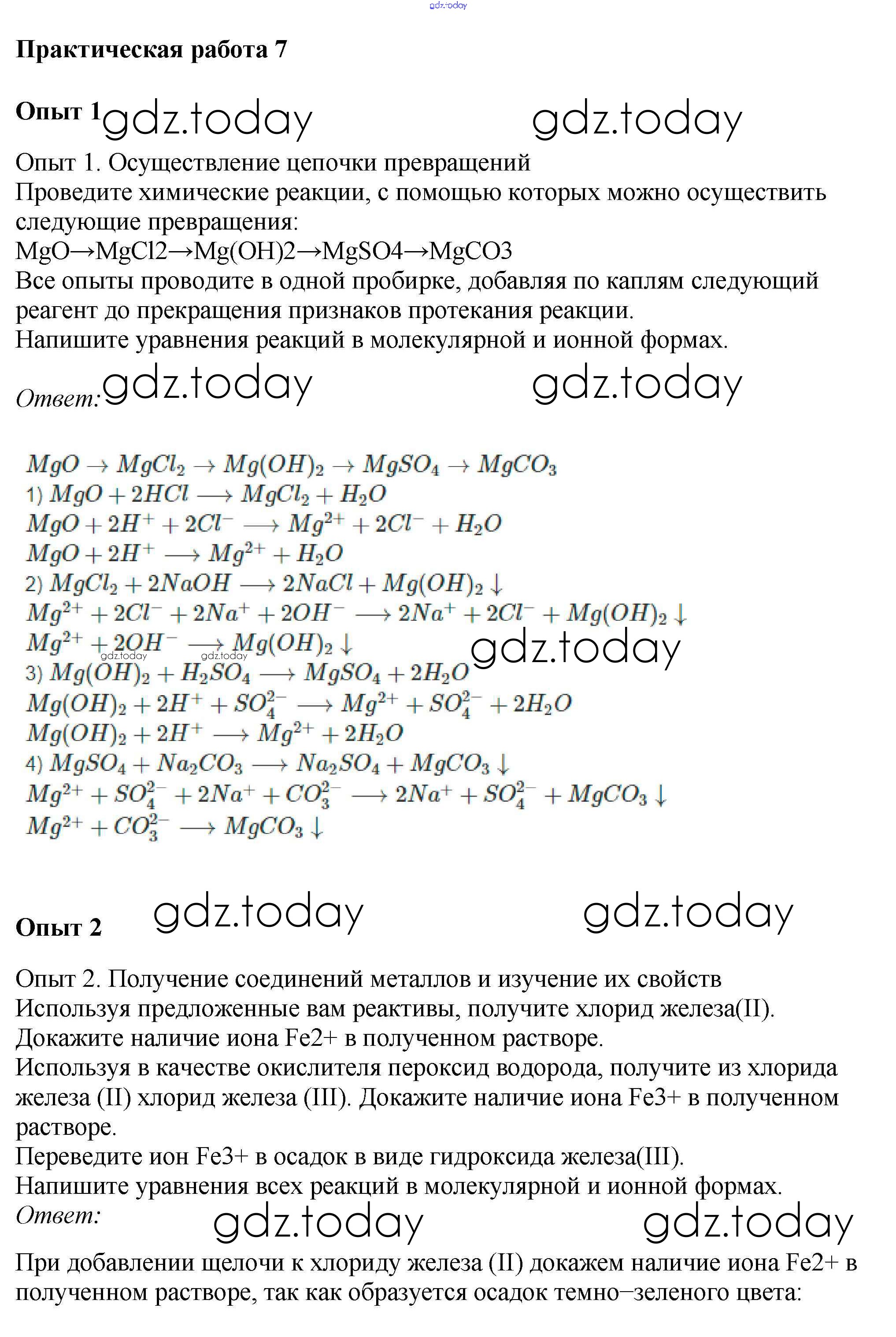 На страницах сайта gdz.today вы найдете учебный и вспомогательный материал, направленный на улучшения знаний школьной программы. ГДЗ - онлайн мир знаний Решение к практическим работам 7 Учебнику по Химии для 9 класса Габриелян, Остроумов Просвещение 2021