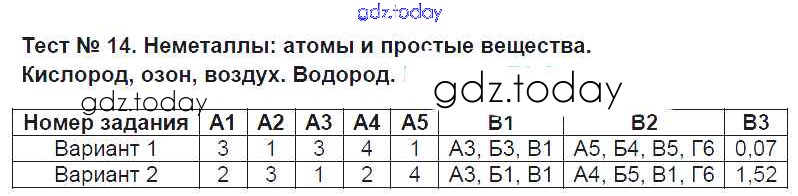 Ответы к Решение к тестам Тест №14. Неметаллы - атомы и простые вещества Контрольно-измерительным материалам (КИМ) по Химии для 9 класса Стрельникова ВАКО 2017