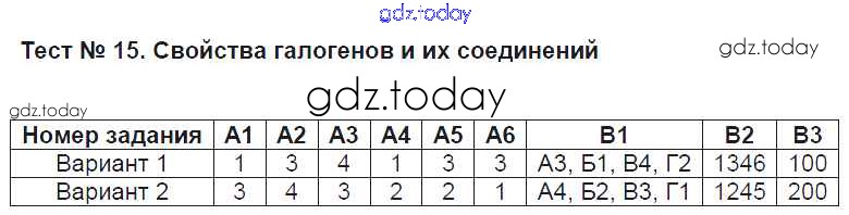 Ответы к Решение к тестам Тест №15. Свойства галогенов и их соединений Контрольно-измерительным материалам (КИМ) по Химии для 9 класса Стрельникова ВАКО 2017