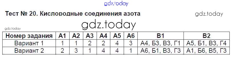 На страницах сайта gdz.today вы найдете учебный и вспомогательный материал, направленный на улучшения знаний школьной программы. ГДЗ - онлайн мир знаний Решение к тестам Тест №20. Кислородные соединения азота Контрольно-измерительным материалам (КИМ) по Химии для 9 класса Стрельникова ВАКО 2017