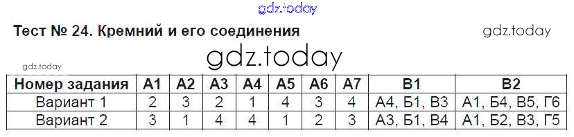 Ответы к Решение к тестам Тест №24. Кремний и его соединения Контрольно-измерительным материалам (КИМ) по Химии для 9 класса Стрельникова ВАКО 2017