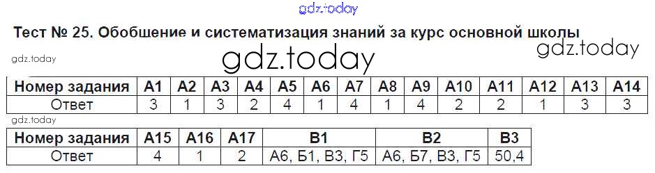 На страницах сайта gdz.today вы найдете учебный и вспомогательный материал, направленный на улучшения знаний школьной программы. ГДЗ - онлайн мир знаний Решение к тестам Тест №25. Обобщение и систематизация знаний за курс основной школы Контрольно-измерительным материалам (КИМ) по Химии для 9 класса Стрельникова ВАКО 2017