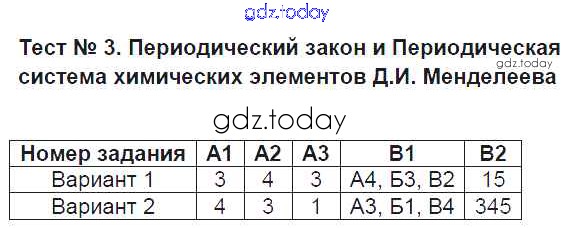 Ответы к Решение к тестам Тест №3. Периодический закон и Периодическая система химических элементов Д.И. Менделеева Контрольно-измерительным материалам (КИМ) по Химии для 9 класса Стрельникова ВАКО 2017