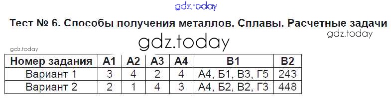 На страницах сайта gdz.today вы найдете учебный и вспомогательный материал, направленный на улучшения знаний школьной программы. ГДЗ - онлайн мир знаний Решение к тестам Тест №6. Способы получения металлов. Сплавы. Расчетные задачи Контрольно-измерительным материалам (КИМ) по Химии для 9 класса Стрельникова ВАКО 2017