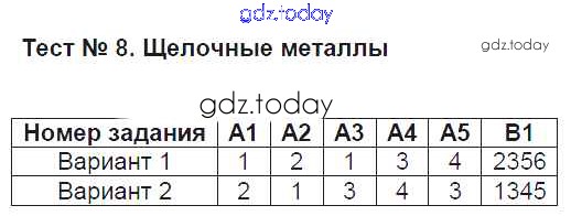 Ответы к Решение к тестам Тест №8. Щелочные металлы Контрольно-измерительным материалам (КИМ) по Химии для 9 класса Стрельникова ВАКО 2017