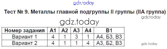 Ответы к Решение к тестам Тест №9. Металлы главной подгруппы ii группы Контрольно-измерительным материалам (КИМ) по Химии для 9 класса Стрельникова ВАКО 2017