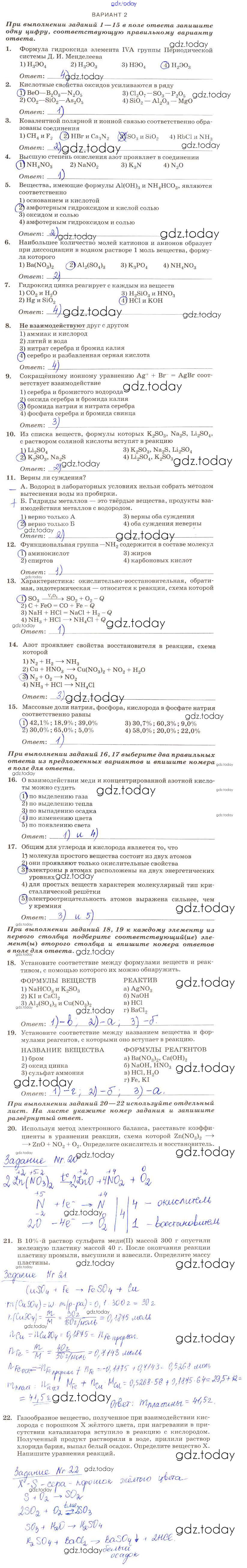 Ответы к Итоговая КР Решение к контрольным работам вариант-2 Контрольным работам по Химии для 9 класса Габриелян, Березкин Дрофа Вертикаль 2013