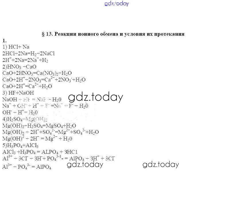 Ответы к Решение к §13 (Упражнения) 1 Рабочей тетради по Химии для 9 класса Еремин, Дроздов Дрофа 2020