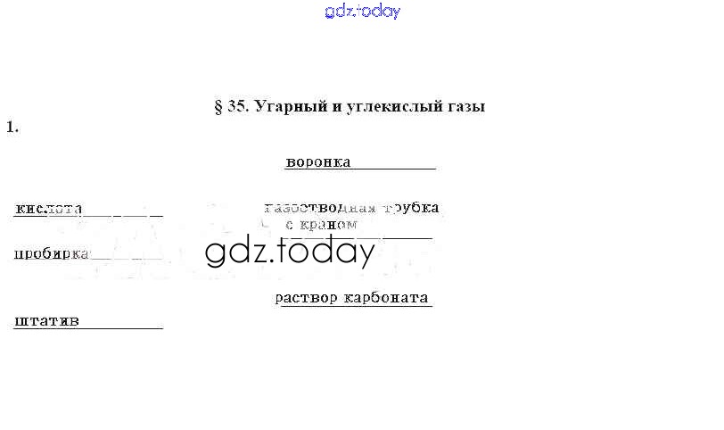 На страницах сайта gdz.today вы найдете учебный и вспомогательный материал, направленный на улучшения знаний школьной программы. ГДЗ - онлайн мир знаний Решение к §35 (Упражнения) 1 Рабочей тетради по Химии для 9 класса Еремин, Дроздов Дрофа 2020