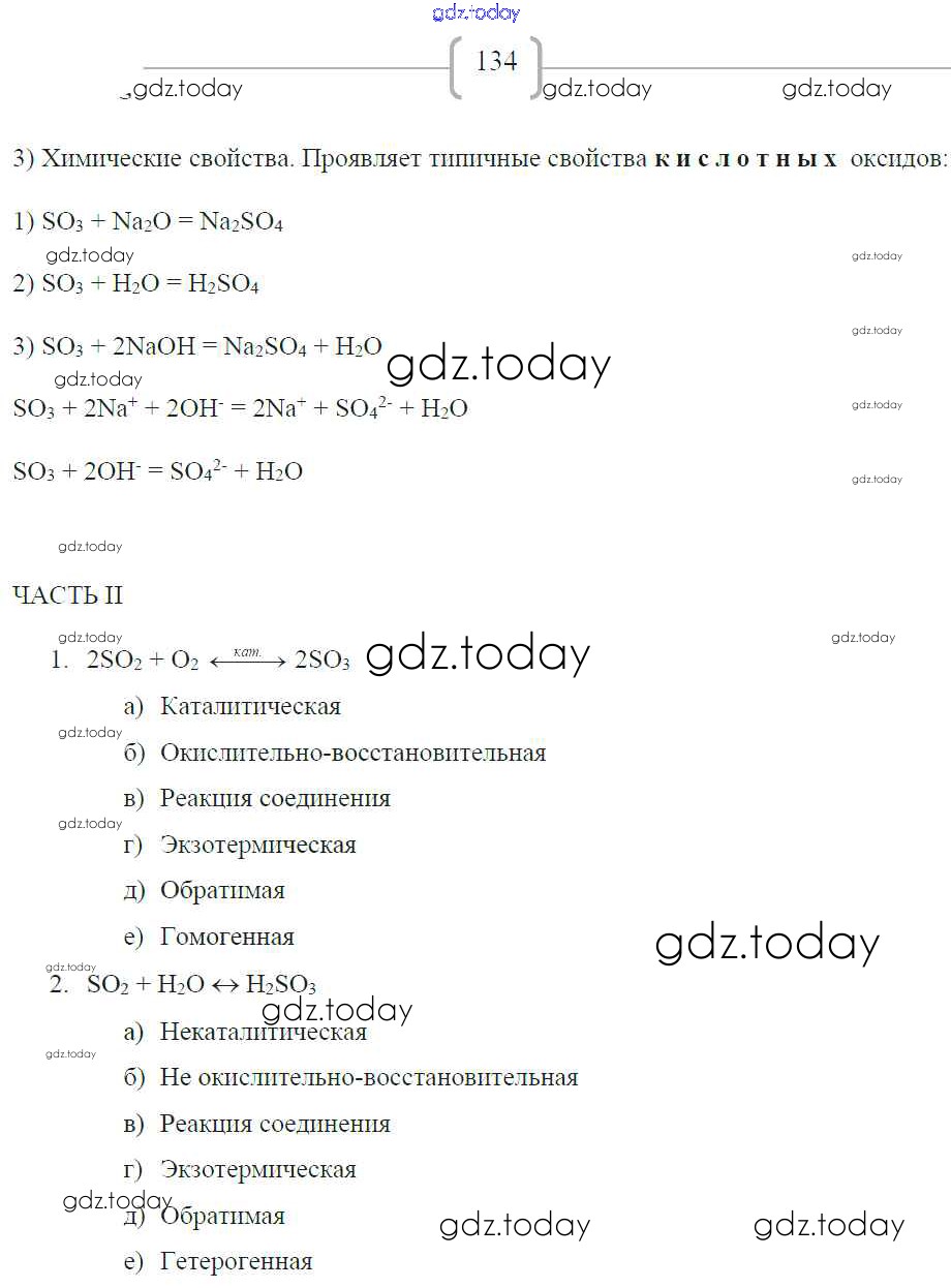Ответы к Страницы (решение) 134 Рабочей тетради по Химии для 9 класса Габриелян, Сладков Дрофа Вертикаль 2014