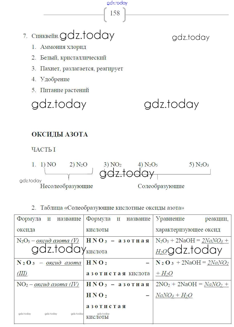 На страницах сайта gdz.today вы найдете учебный и вспомогательный материал, направленный на улучшения знаний школьной программы. ГДЗ - онлайн мир знаний Страницы (решение) 158 Рабочей тетради по Химии для 9 класса Габриелян, Сладков Дрофа Вертикаль 2014