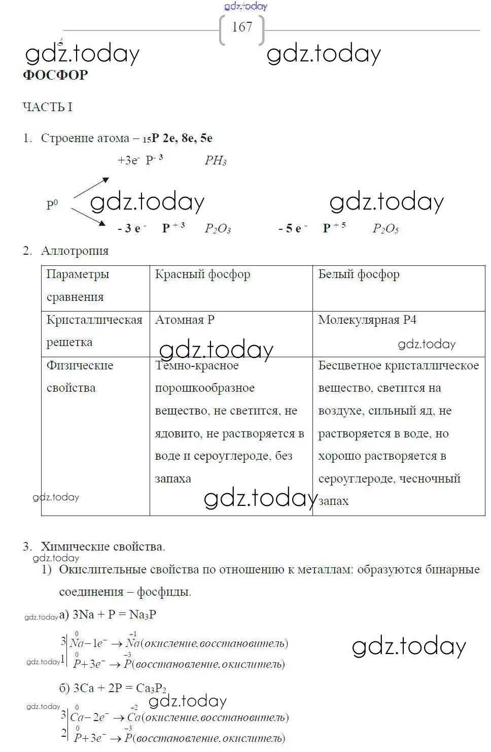 Ответы к Страницы (решение) 167 Рабочей тетради по Химии для 9 класса Габриелян, Сладков Дрофа Вертикаль 2014