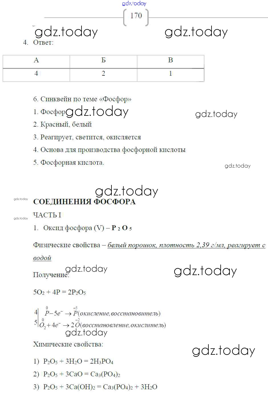 На страницах сайта gdz.today вы найдете учебный и вспомогательный материал, направленный на улучшения знаний школьной программы. ГДЗ - онлайн мир знаний Страницы (решение) 170 Рабочей тетради по Химии для 9 класса Габриелян, Сладков Дрофа Вертикаль 2014