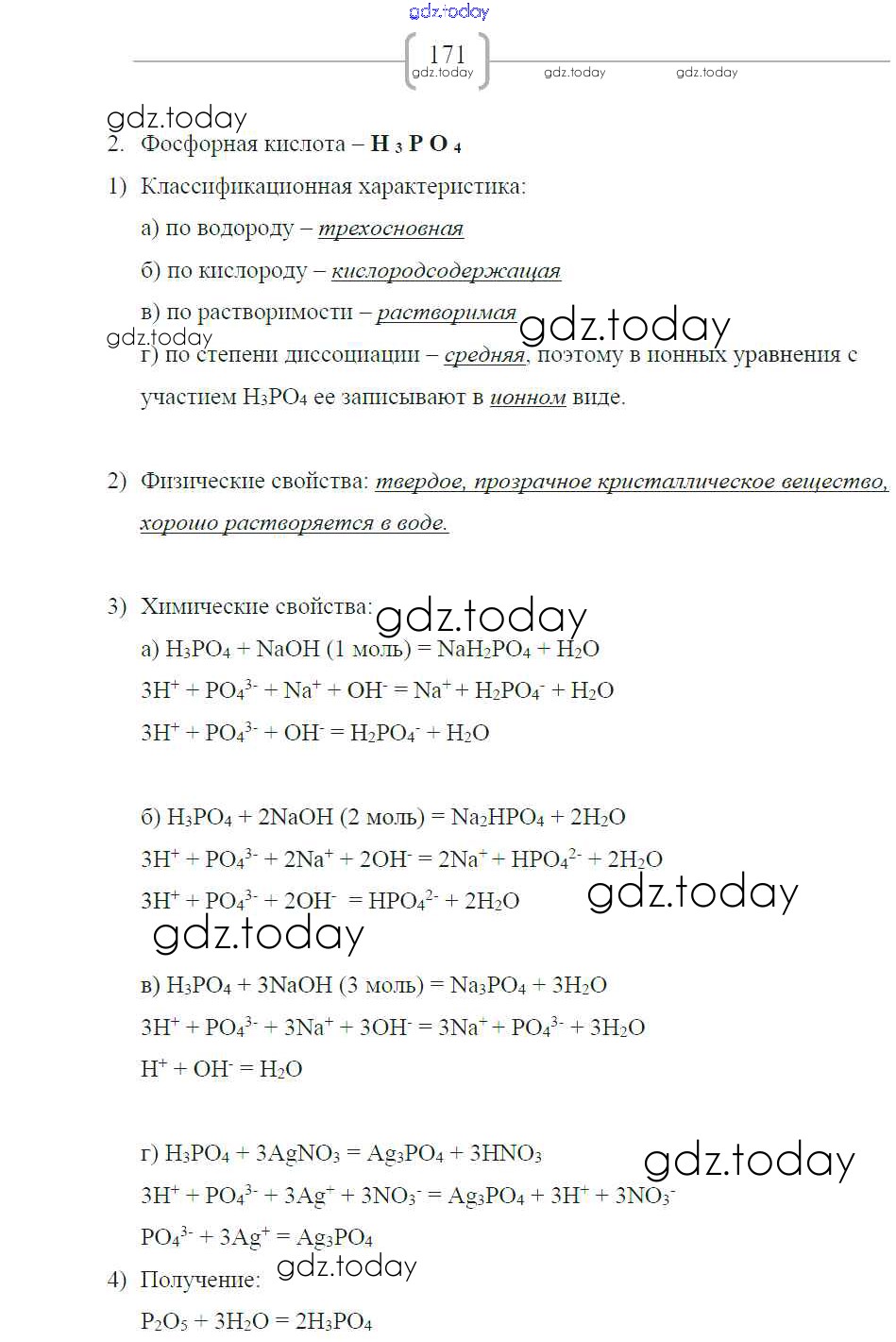 Ответы к Страницы (решение) 171 Рабочей тетради по Химии для 9 класса Габриелян, Сладков Дрофа Вертикаль 2014