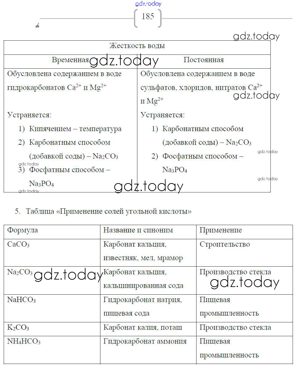 Ответы к Страницы (решение) 185 Рабочей тетради по Химии для 9 класса Габриелян, Сладков Дрофа Вертикаль 2014