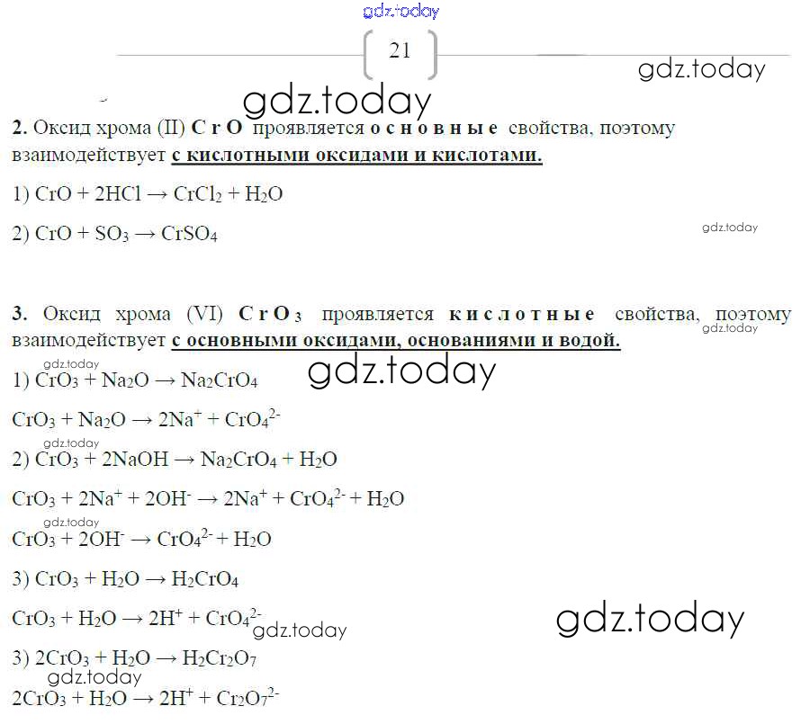 На страницах сайта gdz.today вы найдете учебный и вспомогательный материал, направленный на улучшения знаний школьной программы. ГДЗ - онлайн мир знаний Страницы (решение) 21 Рабочей тетради по Химии для 9 класса Габриелян, Сладков Дрофа Вертикаль 2014