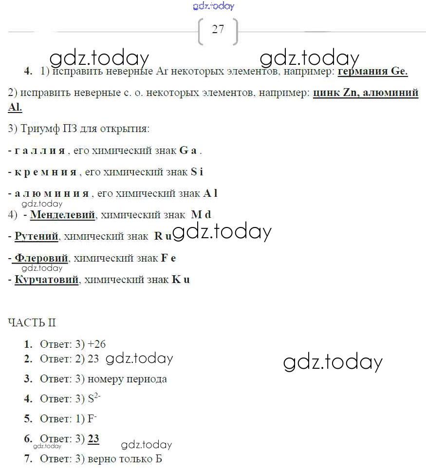 На страницах сайта gdz.today вы найдете учебный и вспомогательный материал, направленный на улучшения знаний школьной программы. ГДЗ - онлайн мир знаний Страницы (решение) 27 Рабочей тетради по Химии для 9 класса Габриелян, Сладков Дрофа Вертикаль 2014