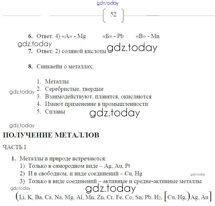 На страницах сайта gdz.today вы найдете учебный и вспомогательный материал, направленный на улучшения знаний школьной программы. ГДЗ - онлайн мир знаний Страницы (решение) 52 Рабочей тетради по Химии для 9 класса Габриелян, Сладков Дрофа Вертикаль 2014
