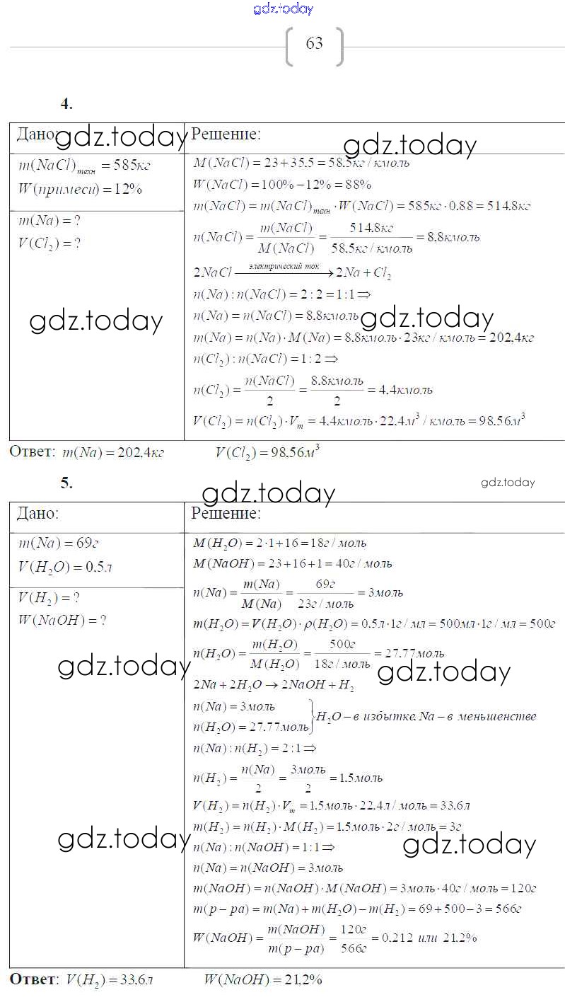 Ответы к Страницы (решение) 63 Рабочей тетради по Химии для 9 класса Габриелян, Сладков Дрофа Вертикаль 2014