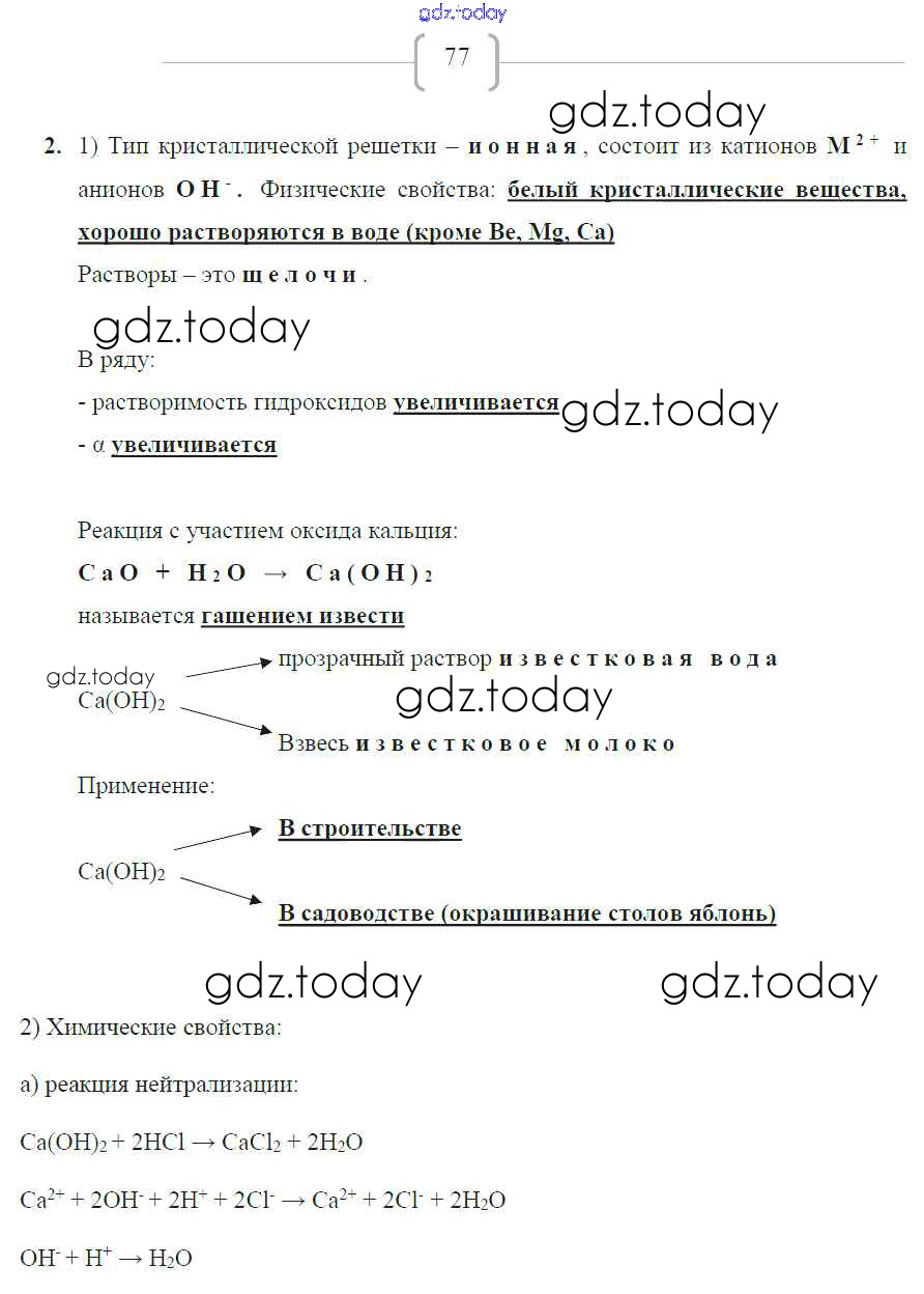 На страницах сайта gdz.today вы найдете учебный и вспомогательный материал, направленный на улучшения знаний школьной программы. ГДЗ - онлайн мир знаний Страницы (решение) 77 Рабочей тетради по Химии для 9 класса Габриелян, Сладков Дрофа Вертикаль 2014