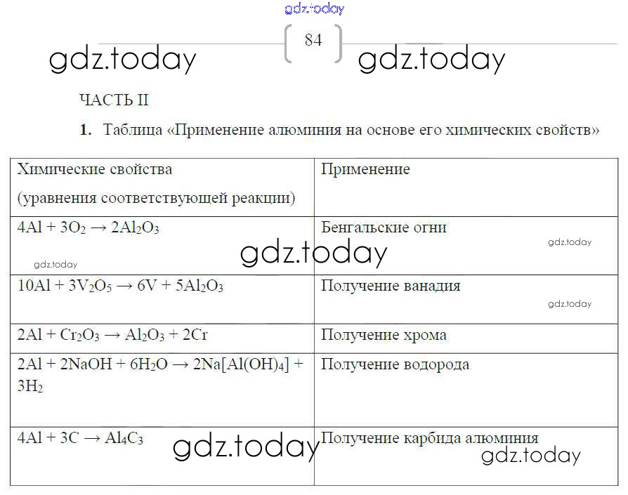 На страницах сайта gdz.today вы найдете учебный и вспомогательный материал, направленный на улучшения знаний школьной программы. ГДЗ - онлайн мир знаний Страницы (решение) 84 Рабочей тетради по Химии для 9 класса Габриелян, Сладков Дрофа Вертикаль 2014