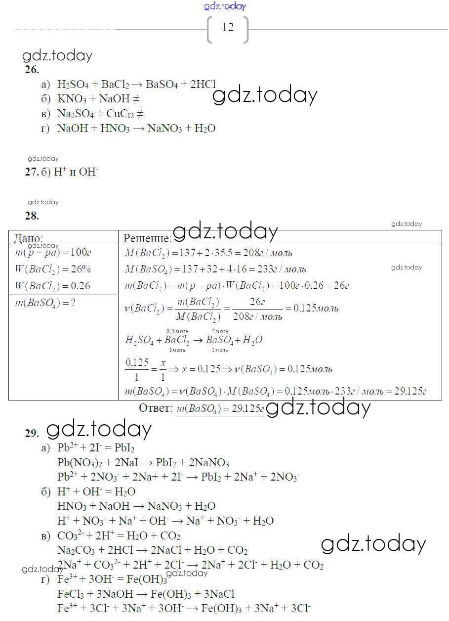 Ответы к Страницы (решение) 12 Рабочей тетради по Химии для 9 класса Габрусева Просвещение 2012