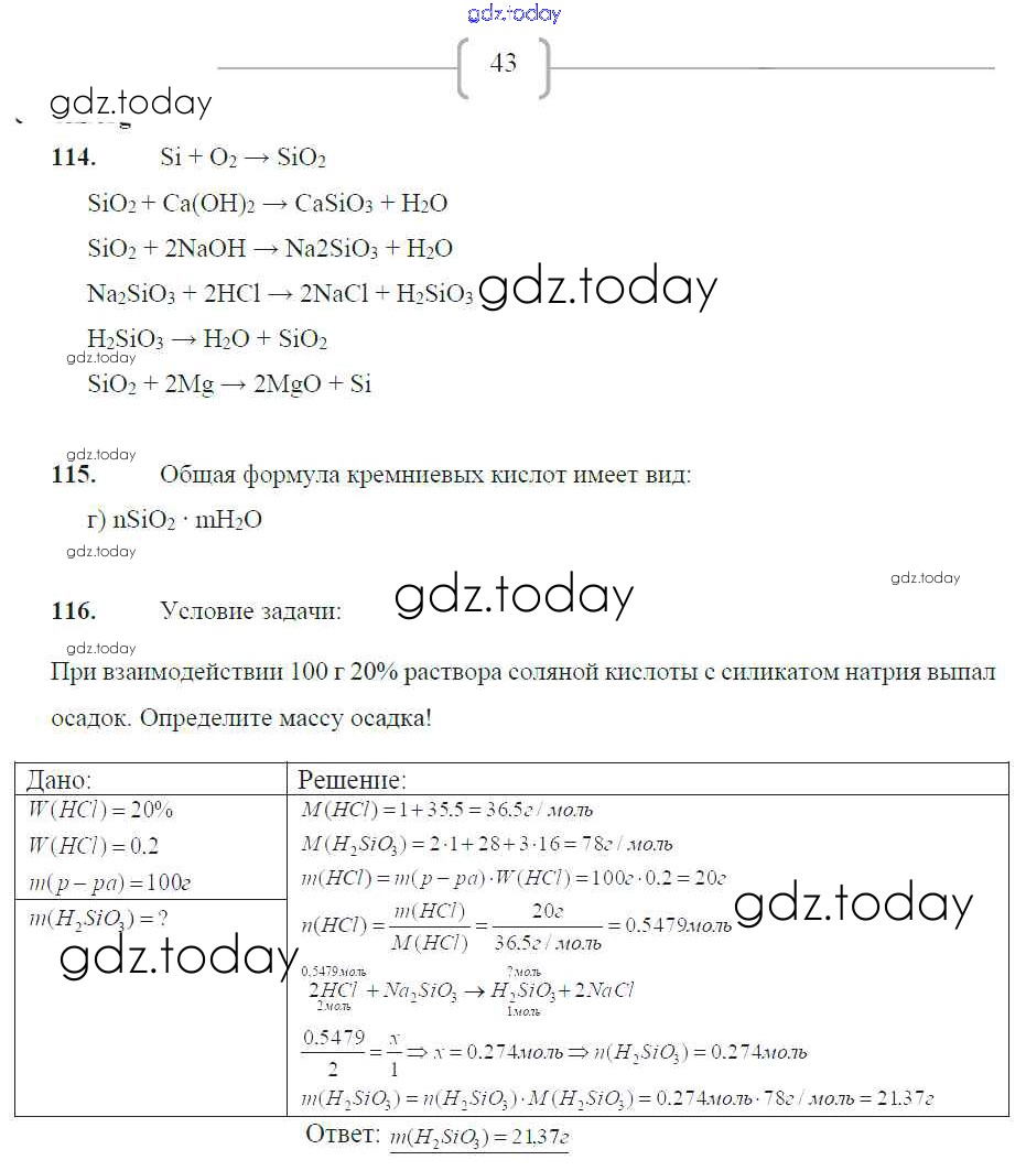 Ответы к Страницы (решение) 43 Рабочей тетради по Химии для 9 класса Габрусева Просвещение 2012