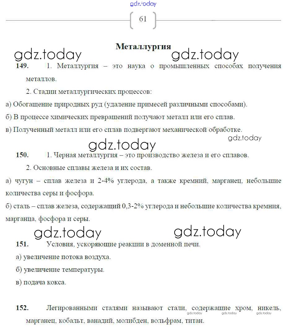 На страницах сайта gdz.today вы найдете учебный и вспомогательный материал, направленный на улучшения знаний школьной программы. ГДЗ - онлайн мир знаний Страницы (решение) 61 Рабочей тетради по Химии для 9 класса Габрусева Просвещение 2012