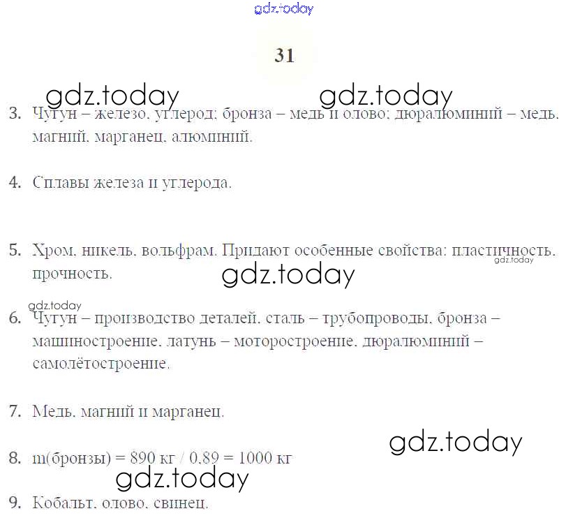 На страницах сайта gdz.today вы найдете учебный и вспомогательный материал, направленный на улучшения знаний школьной программы. ГДЗ - онлайн мир знаний Решение к уроку 11. Сплавы стр.31 Рабочей тетради по Химии для 9 класса Микитюк Дрофа УМК 2014