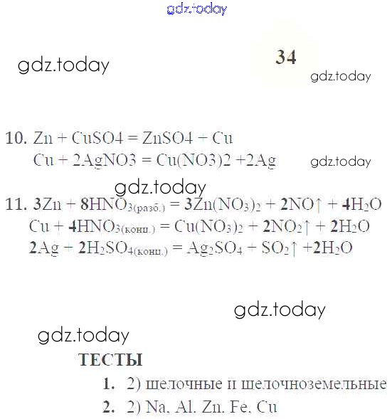 Ответы к Решение к уроку 12. Химические свойства металлов стр.34 Рабочей тетради по Химии для 9 класса Микитюк Дрофа УМК 2014