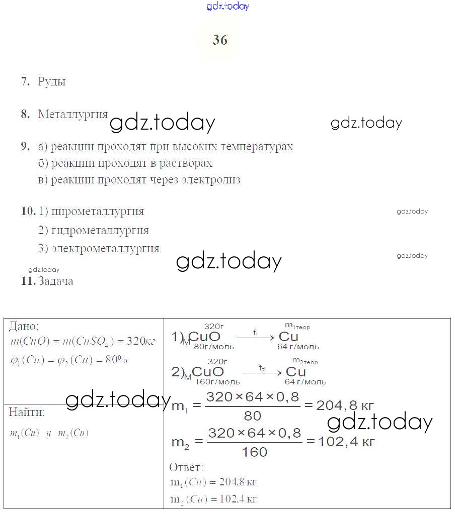 Ответы к Решение к уроку 13. Получение металлов стр.36 Рабочей тетради по Химии для 9 класса Микитюк Дрофа УМК 2014