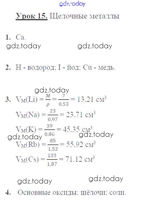 Ответы к Решение к уроку 15. Щелочные металлы стр.40 Рабочей тетради по Химии для 9 класса Микитюк Дрофа УМК 2014