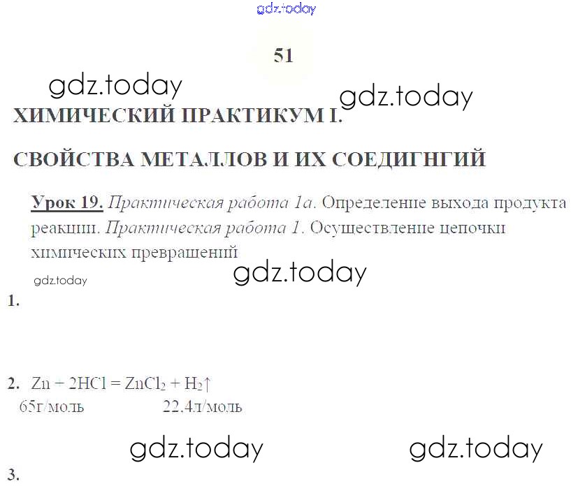 На страницах сайта gdz.today вы найдете учебный и вспомогательный материал, направленный на улучшения знаний школьной программы. ГДЗ - онлайн мир знаний Решение к уроку 19. Практическая работа 1а стр.51 Рабочей тетради по Химии для 9 класса Микитюк Дрофа УМК 2014