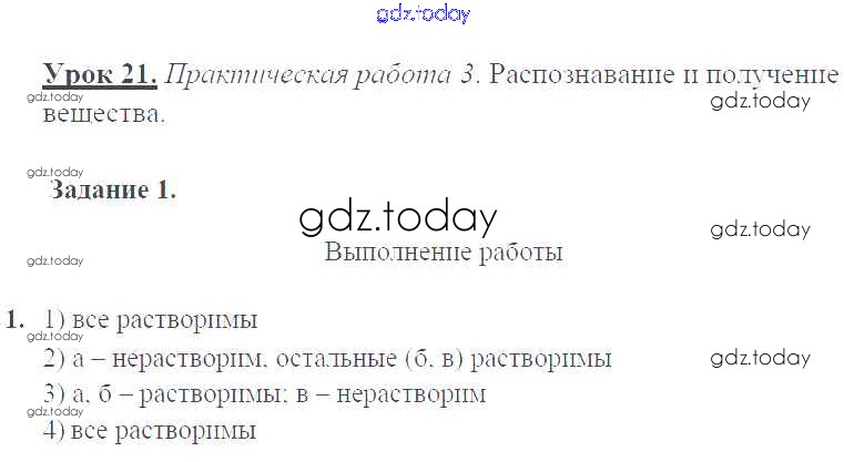На страницах сайта gdz.today вы найдете учебный и вспомогательный материал, направленный на улучшения знаний школьной программы. ГДЗ - онлайн мир знаний Решение к уроку 21. Практическая работа 3 стр.57 Рабочей тетради по Химии для 9 класса Микитюк Дрофа УМК 2014