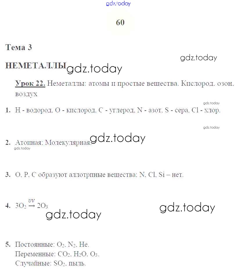На страницах сайта gdz.today вы найдете учебный и вспомогательный материал, направленный на улучшения знаний школьной программы. ГДЗ - онлайн мир знаний Решение к уроку 22. Неметаллы: атомы и простые вещества стр.60 Рабочей тетради по Химии для 9 класса Микитюк Дрофа УМК 2014