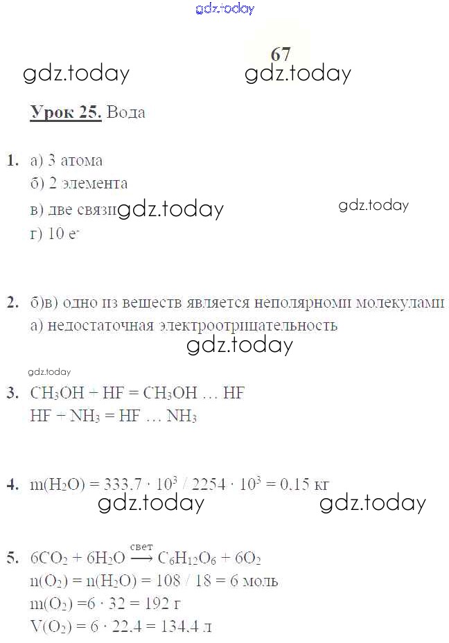 На страницах сайта gdz.today вы найдете учебный и вспомогательный материал, направленный на улучшения знаний школьной программы. ГДЗ - онлайн мир знаний Решение к уроку 25. Вода стр.67 Рабочей тетради по Химии для 9 класса Микитюк Дрофа УМК 2014