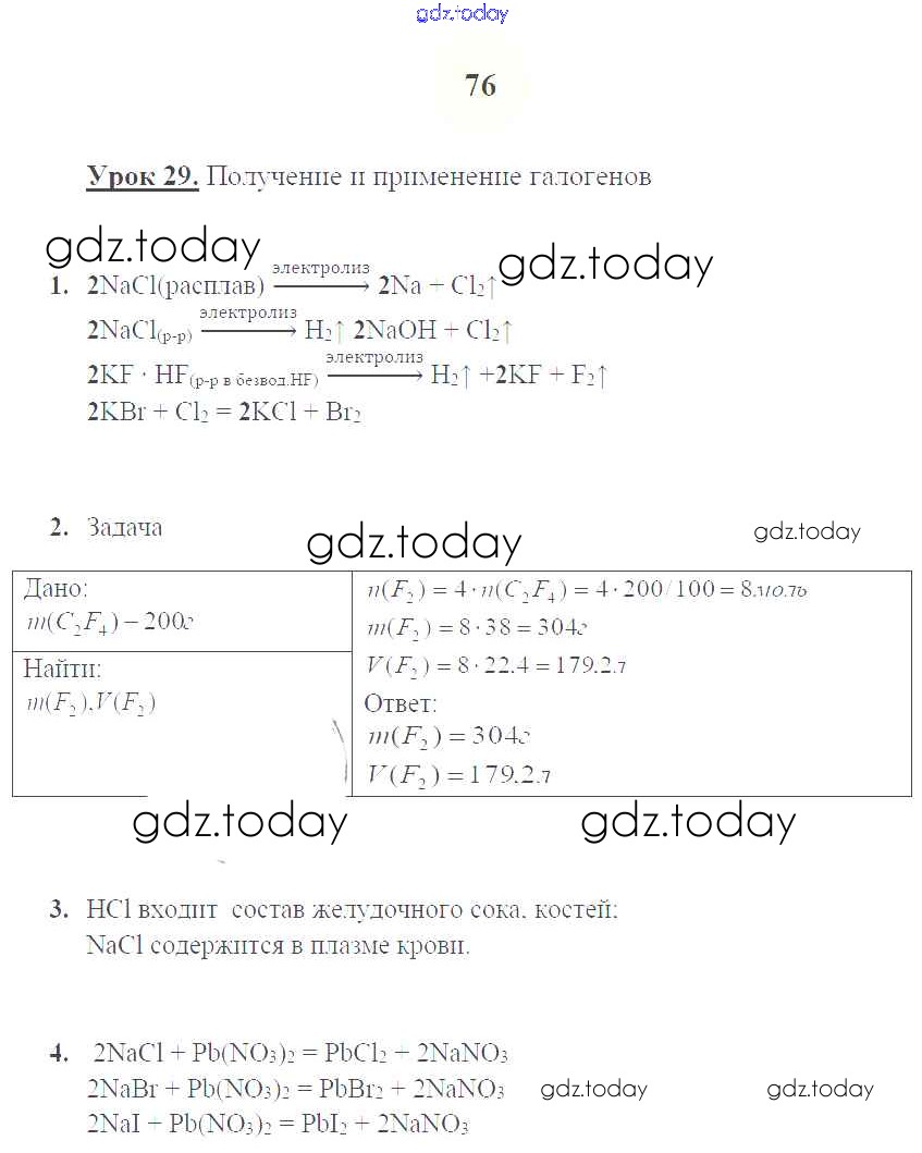 Ответы к Решение к уроку 29. Получение и применение галогенов стр.76 Рабочей тетради по Химии для 9 класса Микитюк Дрофа УМК 2014