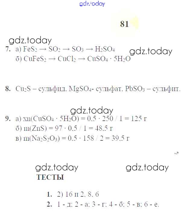 Ответы к Решение к уроку 31. Сера стр.81 Рабочей тетради по Химии для 9 класса Микитюк Дрофа УМК 2014