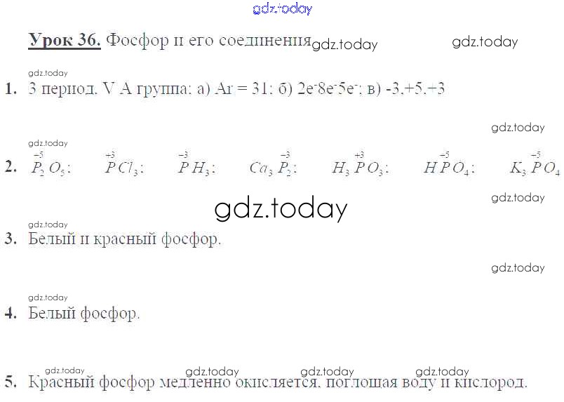 На страницах сайта gdz.today вы найдете учебный и вспомогательный материал, направленный на улучшения знаний школьной программы. ГДЗ - онлайн мир знаний Решение к уроку 36. Фосфор и его соединения стр.92 Рабочей тетради по Химии для 9 класса Микитюк Дрофа УМК 2014
