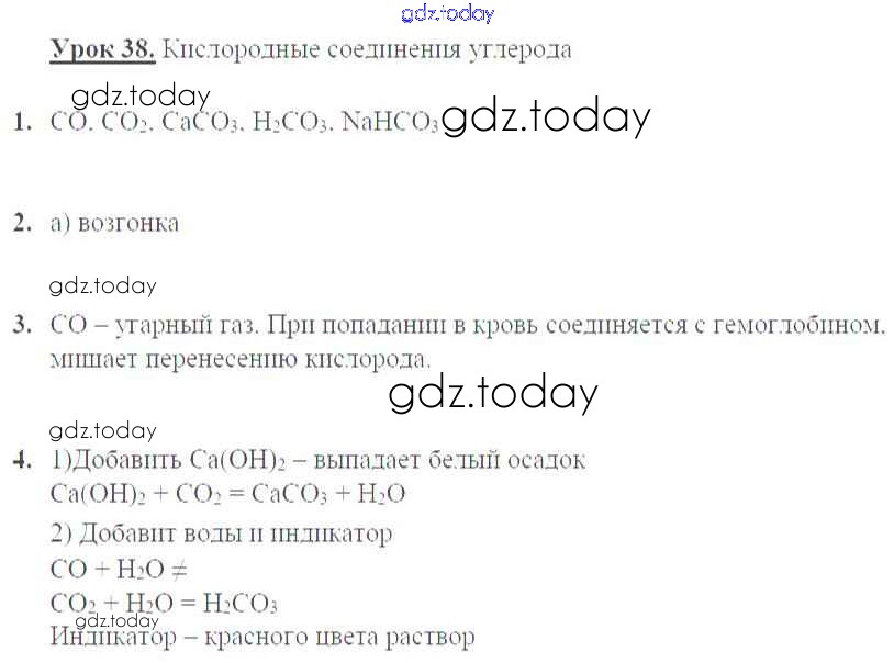 На страницах сайта gdz.today вы найдете учебный и вспомогательный материал, направленный на улучшения знаний школьной программы. ГДЗ - онлайн мир знаний Решение к уроку 38. Кислородные соединения углерода стр.97 Рабочей тетради по Химии для 9 класса Микитюк Дрофа УМК 2014