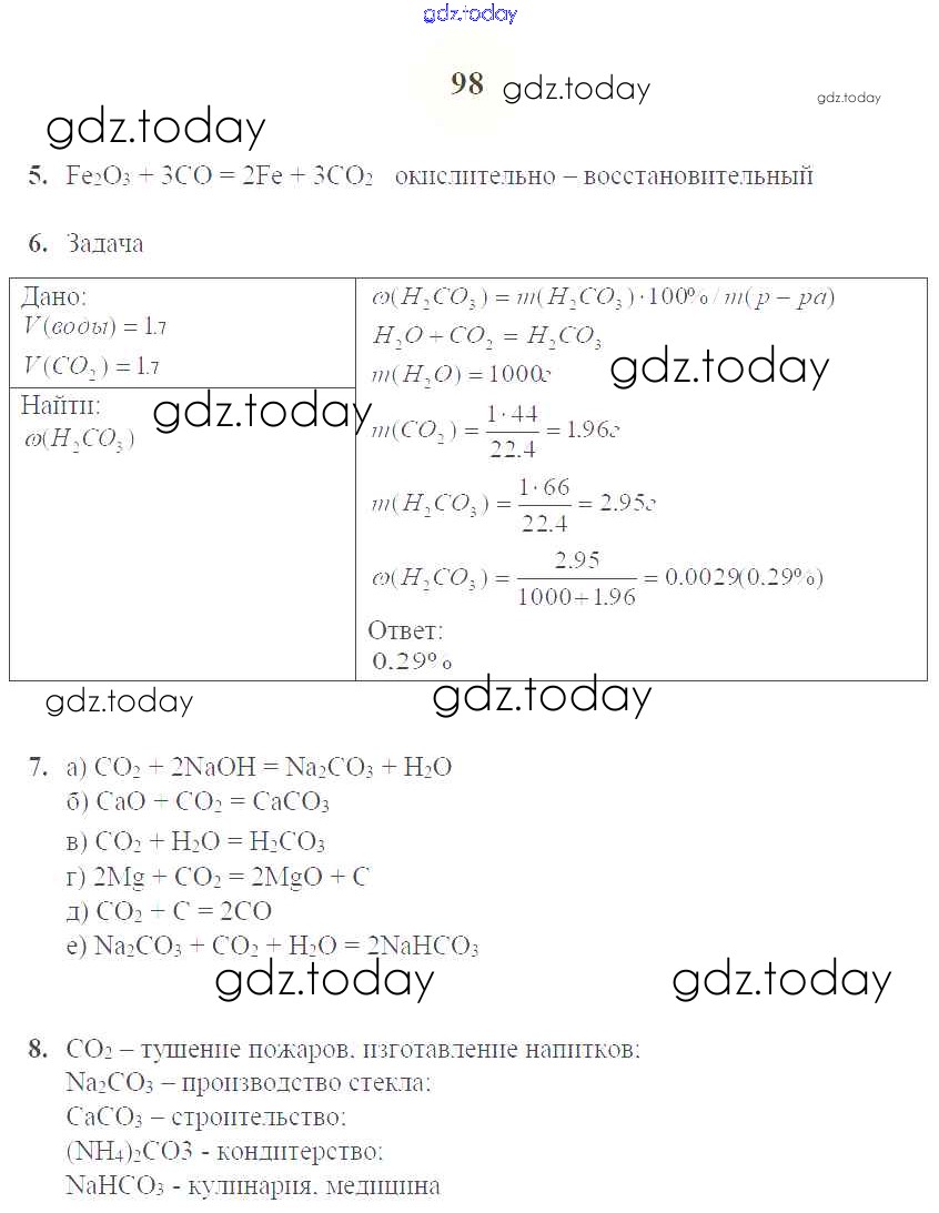 Ответы к Решение к уроку 38. Кислородные соединения углерода стр.98 Рабочей тетради по Химии для 9 класса Микитюк Дрофа УМК 2014