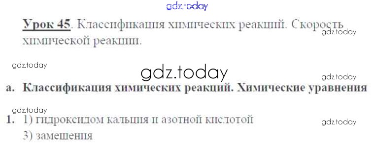 На страницах сайта gdz.today вы найдете учебный и вспомогательный материал, направленный на улучшения знаний школьной программы. ГДЗ - онлайн мир знаний Решение к уроку 45. Классификация химических реакций стр.122 Рабочей тетради по Химии для 9 класса Микитюк Дрофа УМК 2014